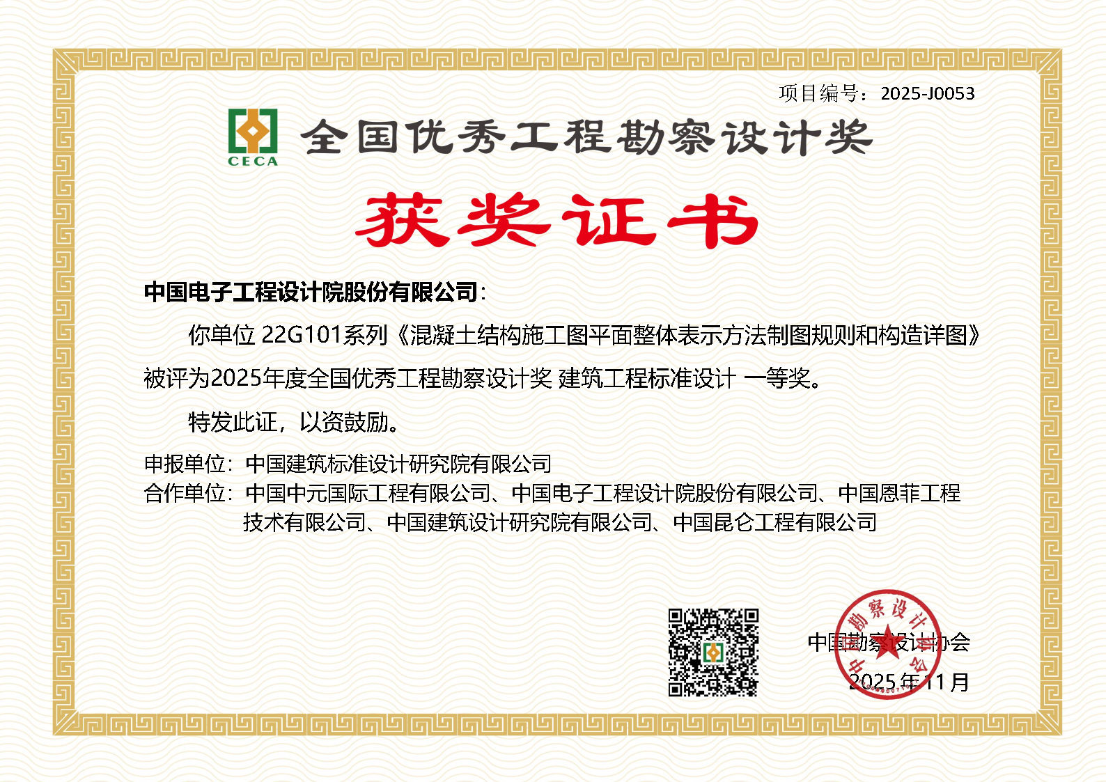 2025中设协全国优秀工程勘察设计奖建筑工程标准设计一等奖—《混凝土结构施工图平面整体表示方法制图规则和构造详图》