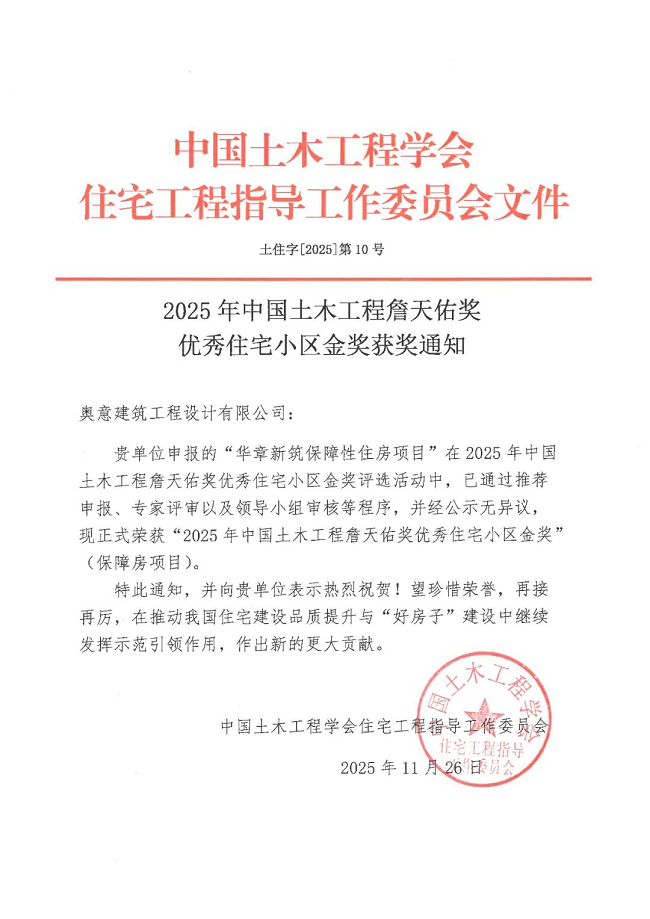 近日,2025年中国土木工程詹天佑奖优秀住宅小区金奖评选活动结束。由中国电子院所属奥意建筑公司原创方案设计,与中建海龙密切合作施工图及建造的华章新筑项目荣获该奖项。