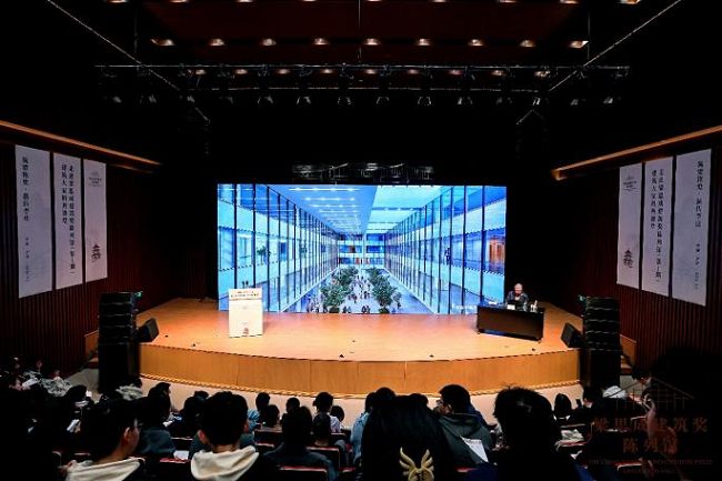 开馆仪式上,黄星元大师作为获奖者代表发表主旨感言,深度诠释梁思成先生学术精髓,指引新时代建筑人守正创新,以专业精神推动行业进阶。活动期间,大师参与植树传薪、旧址研学、书画育人等系列活动,更以“中国建筑大家科普讲堂” 首期主讲嘉宾身份,带来《建筑设计六十年》专题报告,系统梳理从业历程与行业发展脉络,结合 1964 年参与宜宾三线建设的珍贵经历,引发全场热烈反响,充分展现中国电子院建筑师的行业话语权与社会影响力。